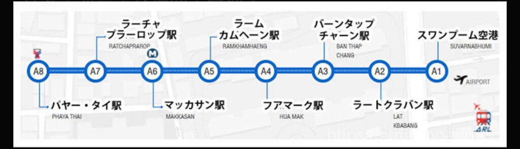 スワンナプーム空港からの電車は、シティラインとエアポートレールリンクが利用できます。私は宿泊するホテルまで、エアポートレールリンクでパヤー・タイ駅まで行き、乗り換え一回でホテルに向かいました。